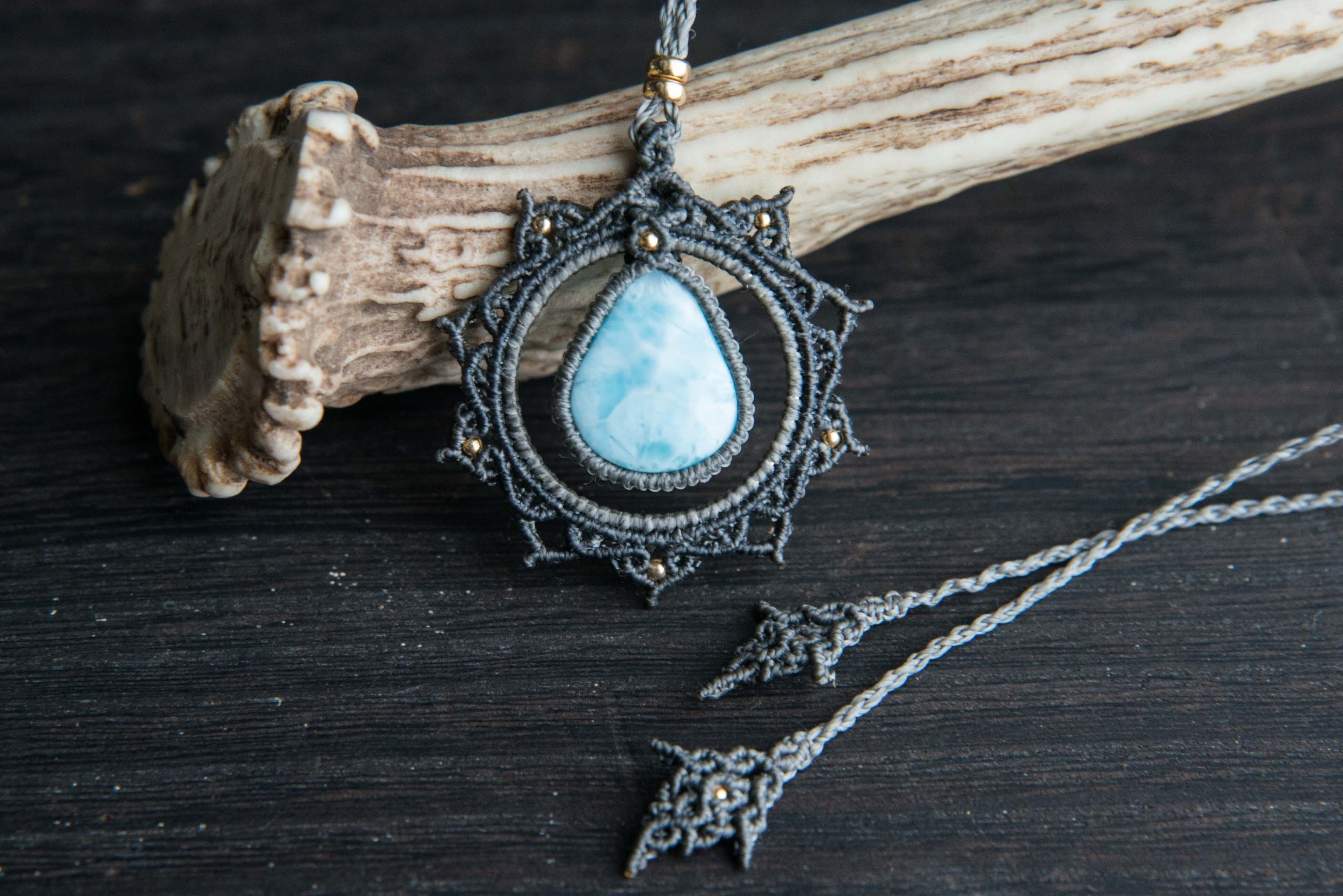 ドミニカ産ラリマーを使用したマクラメペンダントになります。