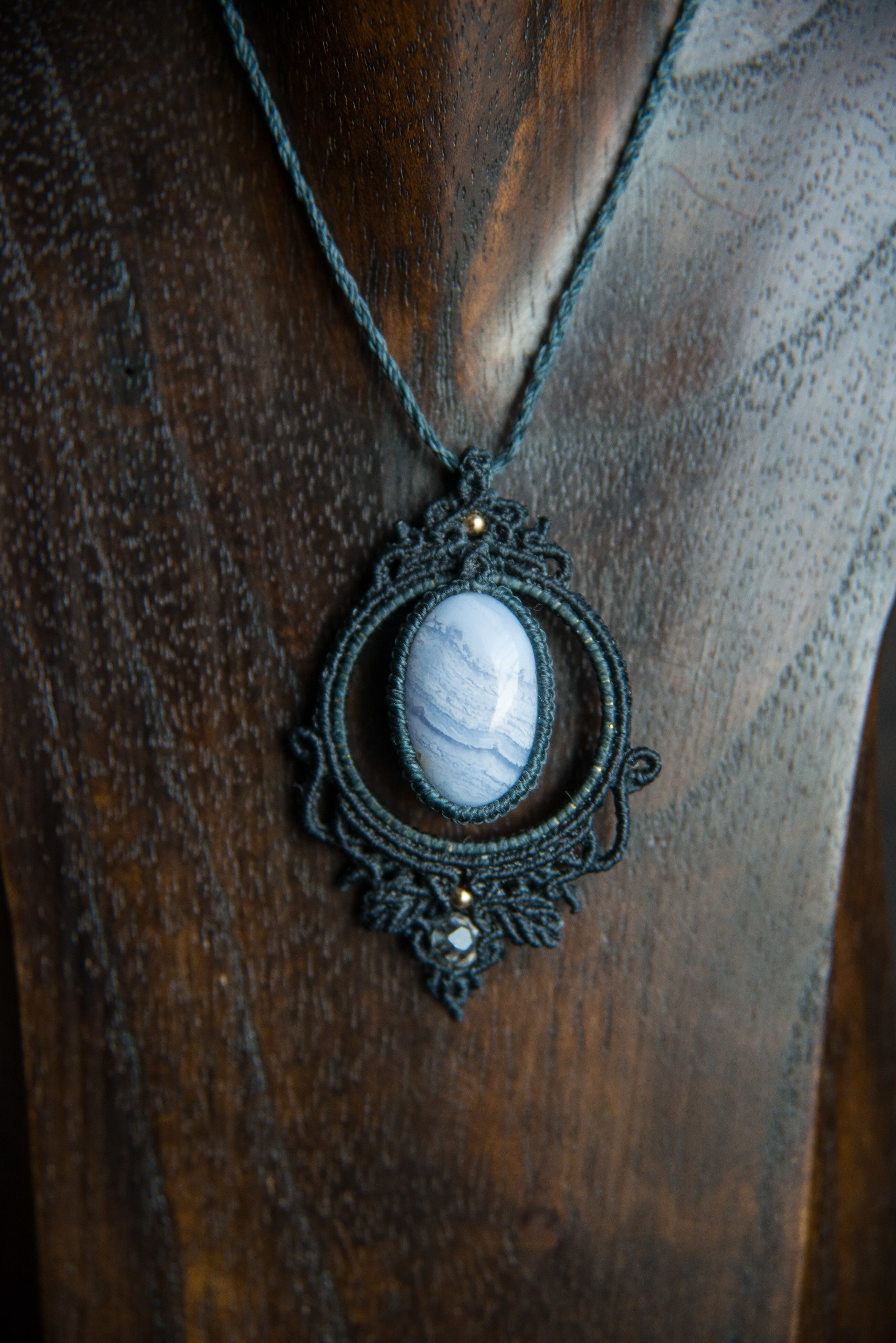 ブルーレスアゲート 天然石 マクラメペンダント
