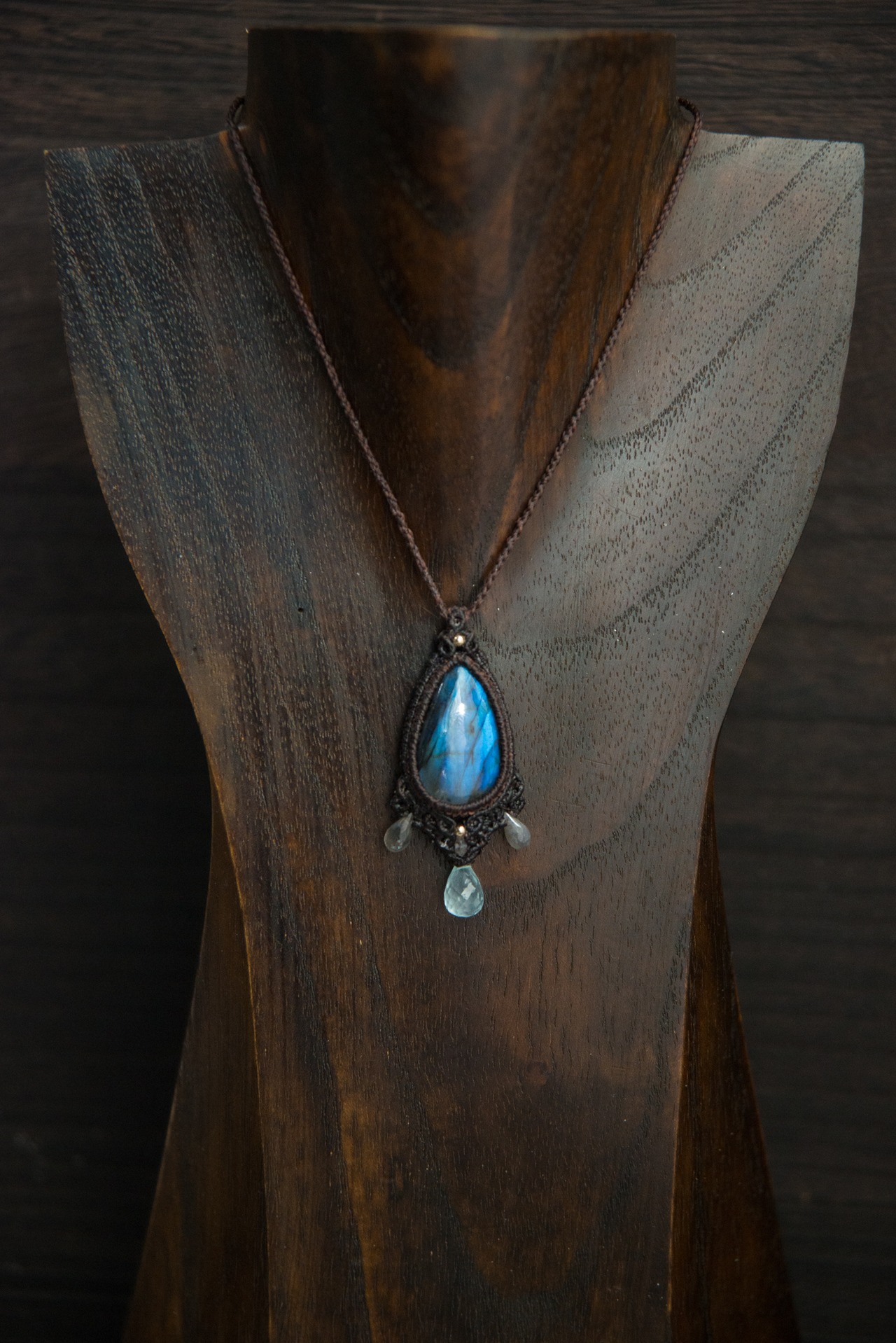 マダガスカル産ラブラドライトのマクラメペンダントになります。