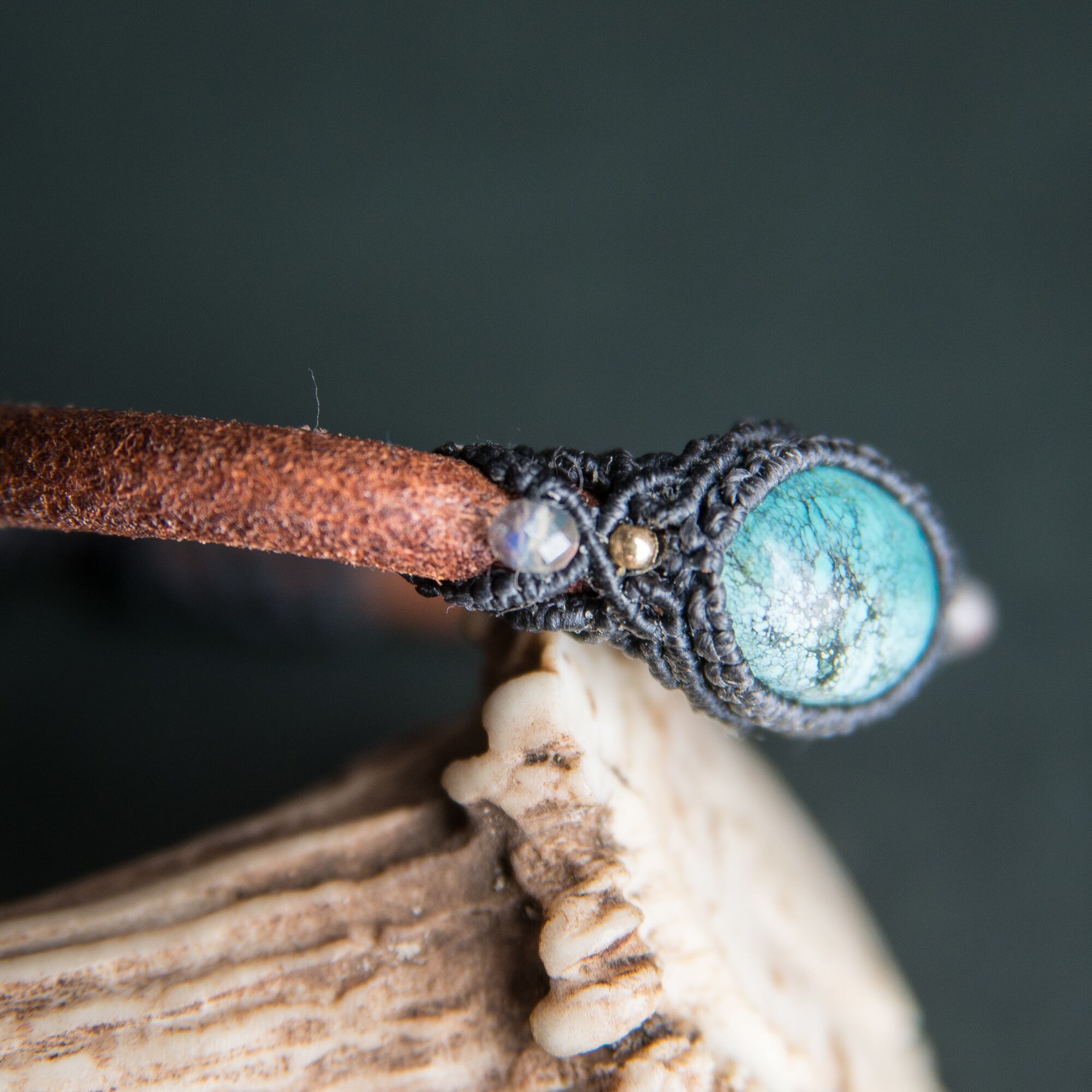 ターコイズ マクラメ&レザー 天然石ブレスレッド